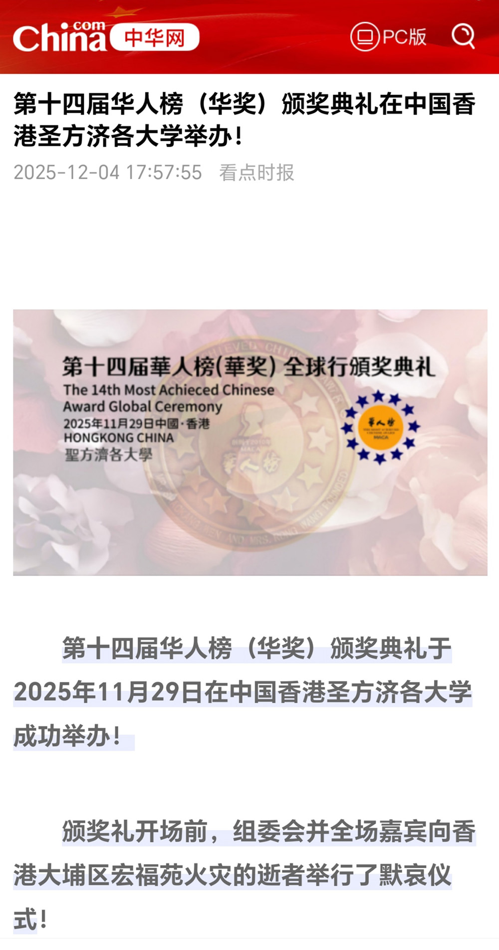2025 華奖得主·第十四届中国香港(2025.11.29)